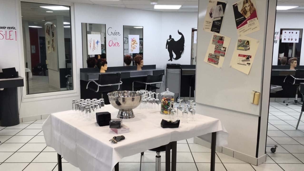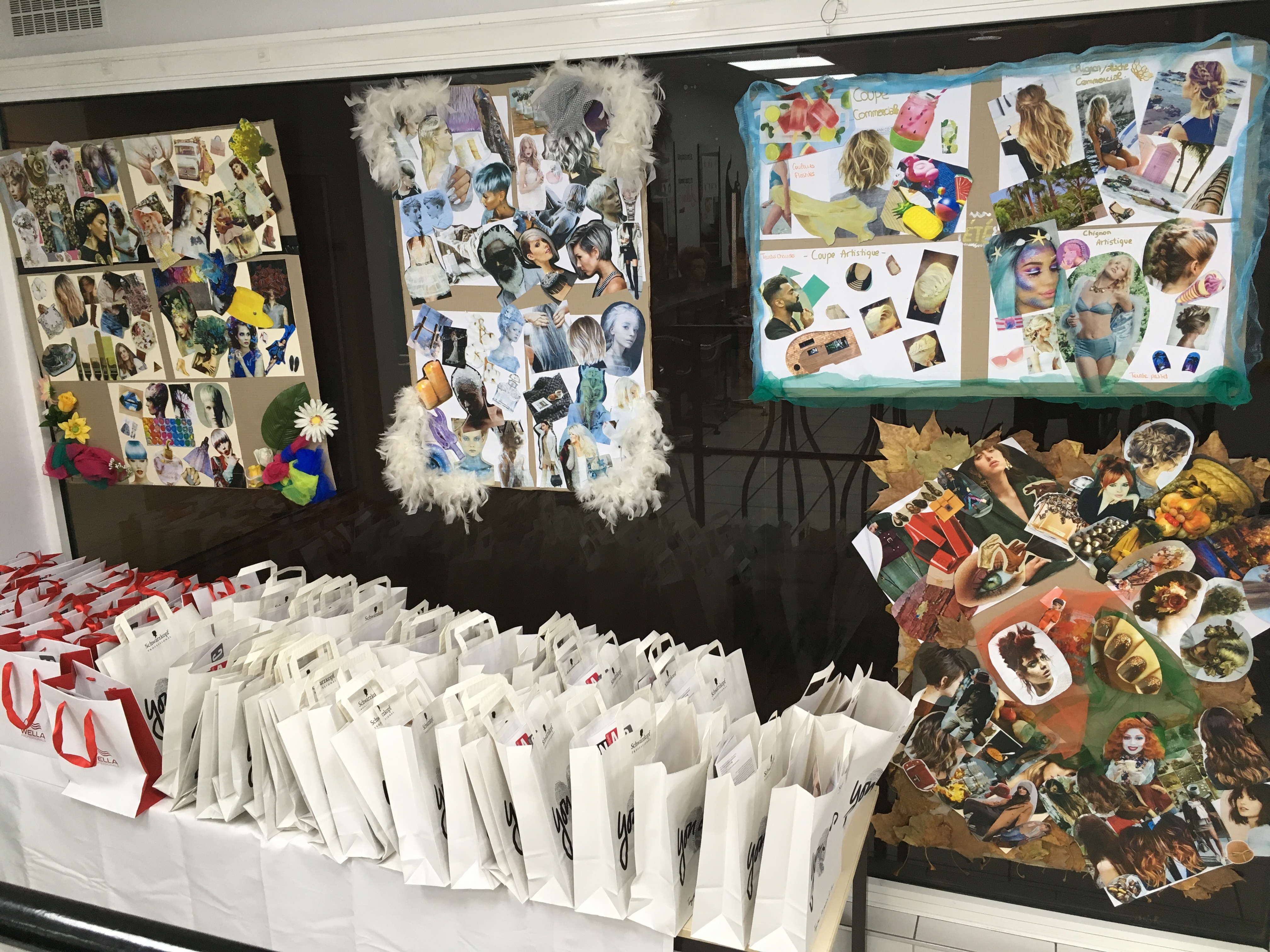• Dans l’espace atelier, exposition du travail réalisé par nos élèves et diffusion d’une vidéo, récapitulative d’un début d’année riche en apprentissage avec nos supports académique Pivot Point et Hair Académie.